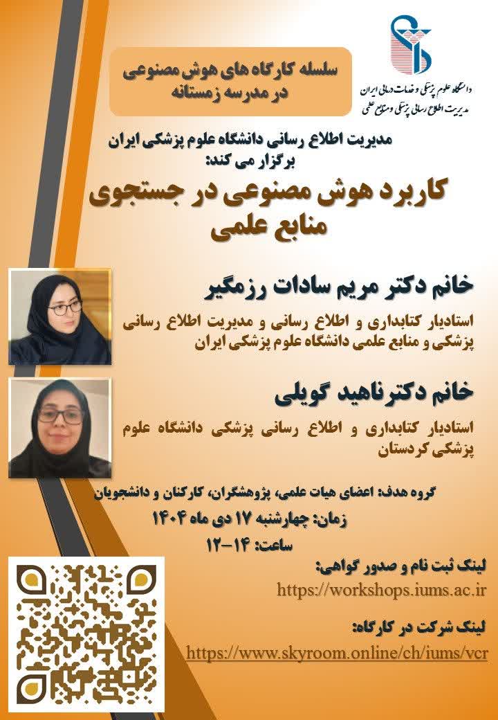 لینک ثبت نام و صدور گواهی: https://workshops.iums.ac.ir